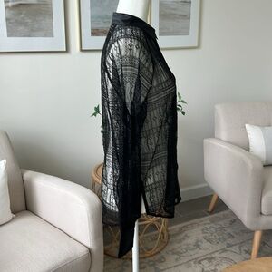 New Jason Wu Black Lace Satin Trim Raglan Sleeve Button Down Overshirt Blouse