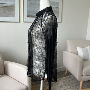 NWOT Jason Wu Sheer Lace Collared Button Down Shirt with Satin Accents