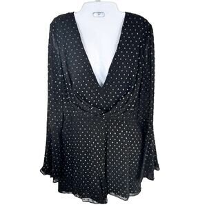 New Jay Godfrey Black Gold Metallic Polka Dot Romper Long Bell Sleeve Sz 6