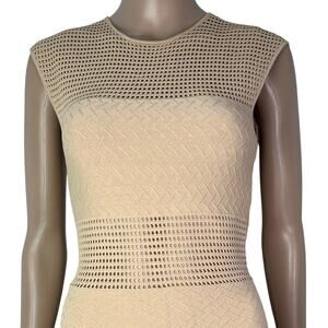 ITEM: New Jay Godfrey Manley Sheer Open Knit Fit & Flare Mini Dress - Pull over style, sheer open knit panels, sleeveless, high neckline