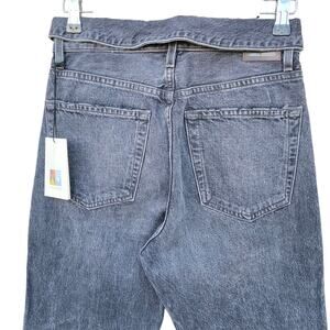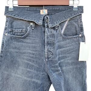 New Jean Atelier Onyx Women Flip Fold Over High Waist Straight Leg Jeans 24