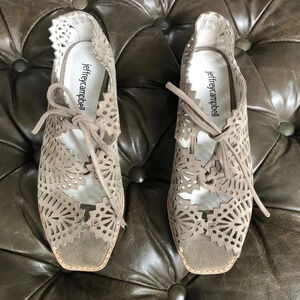 New Jeffrey Campbell Espejo low Wedge Sandal Perforated laser cut lace up print