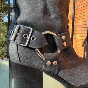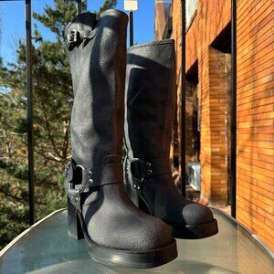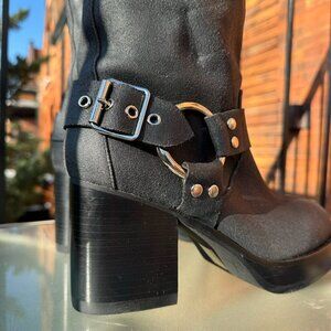 New Jeffrey Campbell Harness Tall Moto Boot Heeled Shoes Suede Black