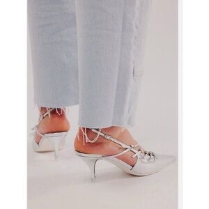 New without box. Jeffrey Campbell "Lash" slingback silver metallic heels, size 8.5, sold at Free People and Revolve.
