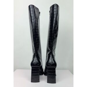 New Jeffrey Campbell Maximal 3 Platform Knee High Heel In Black Croco Sz US 9.5