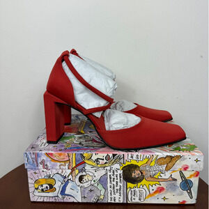 New Jeffrey Campbell Popular Square-Toe Heel Pump Rust Neoprene Women's Size 9