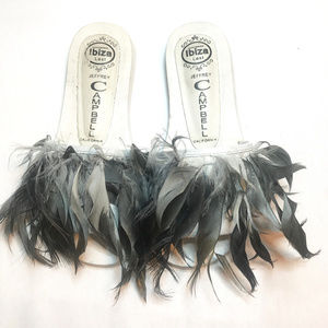New Jeffrey Campbell rooster feather slides/sandal