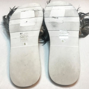 Brand new never worn! Super fun shoes Leather slides with black/white rooster feathers. Size 6 Gorgeous shoes! No box