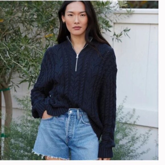 New Jenni Kayne Cotton Cable Half Zip Sweater in Navy Sz L