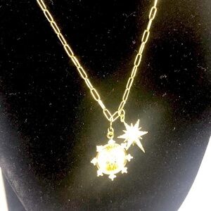 New Jennifer Miller starburst charm necklace 14K gold paper clip chain CZ