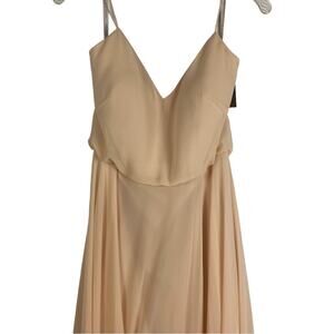 New with tags Jenny Yoo Inesse Chiffon Bridesmaid Dress in blush. V-neck, subtle blouson waist, and a romantic circle skirt. The delicate spaghetti straps create a V at center back. This universally flattering style is chic, effortless, and a dream to wear! Size 4. No flaws detected. See measurements for proper fit.