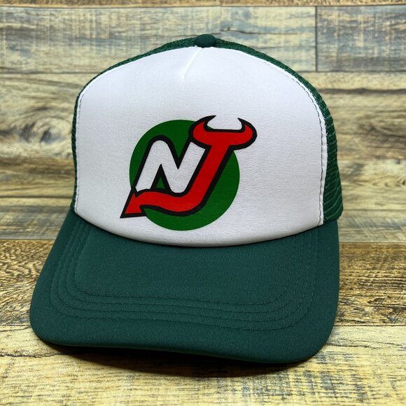 New Jersey Devils Mens Trucker Hat Green Snapback Retro Logo Hockey Baseball Cap