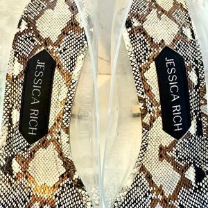 New! Jessica Rich "So Fancy" Snake Print Clear PVC Heels.