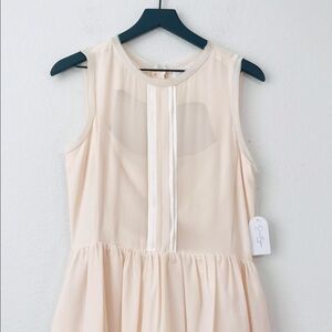 Cute Fit and Flare Sheer Blush Sleeveless Dress with layers of Chiffon and Tulle. Dress is fully lined and the tulle inside the skirt gives it a fuller skirt look. Perfect for a wedding, bridal shower, baby shower or any occasion!