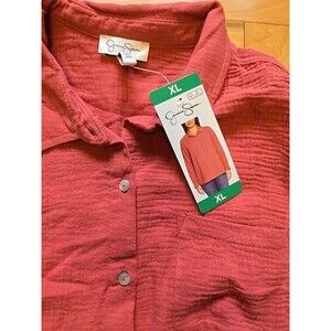 New Jessica Simpson Women Gauze Button Front Shirt XL Red Costco