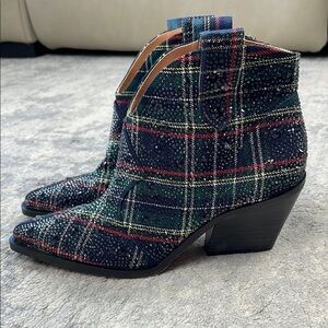 New Jessica Simpson Zadie Rhinestone Plaid Tartan Ankle Boots Western Sz 5.5