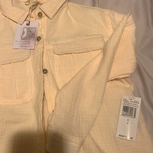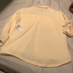 New buttercream button up. She can layer up with this neutral color. Nice shirt