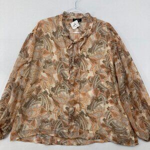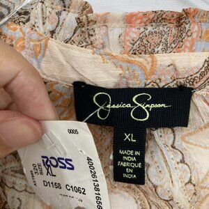 New Jessica Simpson size XL Artsy Abstract Tie Front Balloon Sleeve Blouse Lined