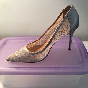 New! Jewel BADGLEY MISCHKA Champagne Satin w/Glitter Mesh High Heels 8.5M