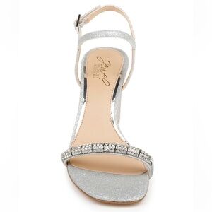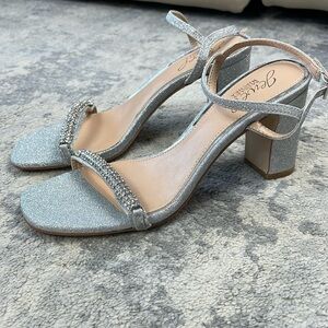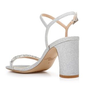 New Jewel Badgley Mischka Charlee Block Heel Bling Silver Glitter Sz 6