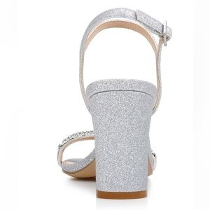 Rhinestone sparkling crystals delight on a block-heel sandal that's ready for your next special occasion.