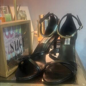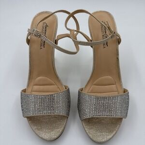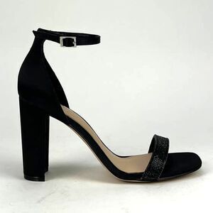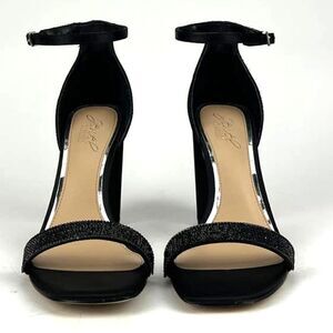 New Jewel Badgley Mischka Women Shoes Black Satin Block Heel Open SandalsâUSâ8.5