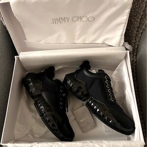 New Jimmy Choo Black Diamond Trainer Sneakers, Men’s European size 39 in Leather and Mesh material. New condition with box. It is very unisex. I am a size 9 in women and can fit in these sneakers with room. Great for size women 9-10. These diamond sneakers retail for $1200. I’m selling it for really low. Don’t miss it.