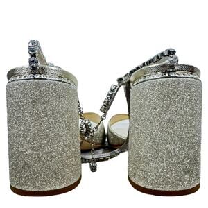 New Jimmy Choo Saeda Block Heel Glitter Crystals Sandals Platinum Size 38