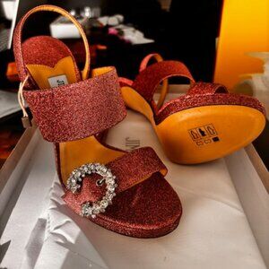 These elegant shoes have never been worn, are in perfect condition, and come complete with all original packaging. They would be a stunning addition to a dressy wardrobe or bridal/event shoe collection. The 120mm stiletto heel and subtle platform add height and balance, while the crystal-embellished buckle brings just the right amount of sparkle. They fit like US 7.5 - 8. This color style are rare and sold out online.