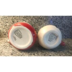 New~ Johanna Parker Holiday Christmas Santa & Snowman Mugs Red