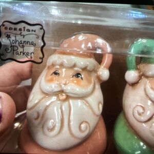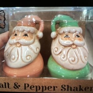 New Johanna Parker Santa Salt and Pepper Shakers - light green and pink