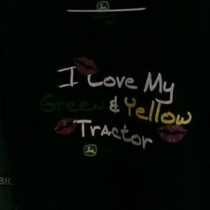 Like brand new barely worn tee with the famous I love my Green and Yellow Tractor. Bust size is pit to put 17 inches total 34. Total Length is 27 from put down is 17 inches. Any questions just ask. Bundle and save. I'm a fast shipper. Happy poshing! -Kat