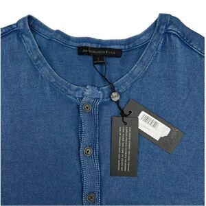 NWT John Varvatos Men Blue Sweatshirt Crew Neck Buttons Long Sleeve Pullover US L MSRP $198