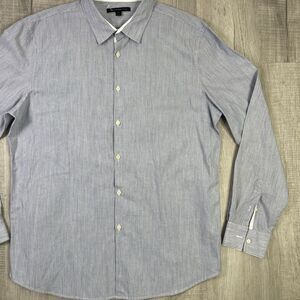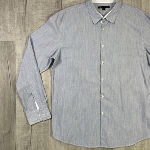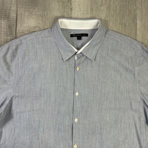 New John Varvatos Mens XL Light Blue Pin Stripes Seersucker Button Shirt O