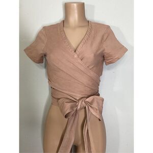 New. Johnathan Simkhai denim wrap crop top. I love the look of this! V-neck, short sleeves, long tie, that wraps around once, and has enough length to make a beautiful bow! And adjustable to fit your specific size. This is a nude/blush color. It is called bronze. Love it! Luxury brand.