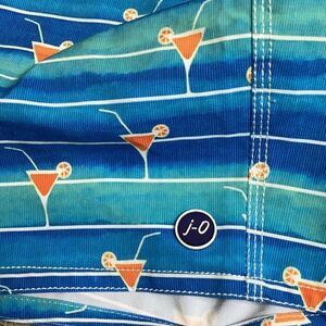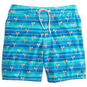 Relax at the poolside in this Johnnie-O 8 1/4-Inch Happy Hour Swim Trunks in Marlin. This Happy Hour Swim Trunks by Johnnie-O features half elastic with full liner front pockets at side seams, back patch pocket, zip fly, 20" outseam. This Johnnie-O Happy Hour Swim Trunks is made of 71% Polyester, 25% Cotton, 4% Spandex.