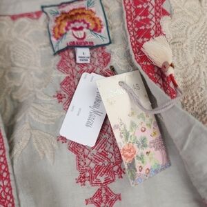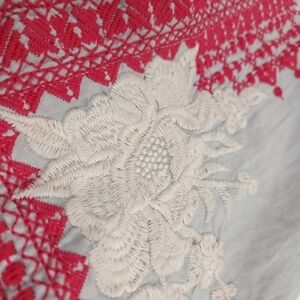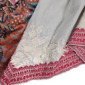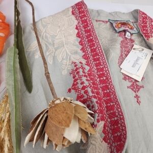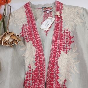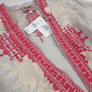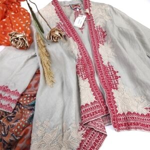 New Johnny Was Camille Draped Embroidered Grey Red Cardigan Sz L