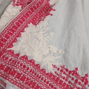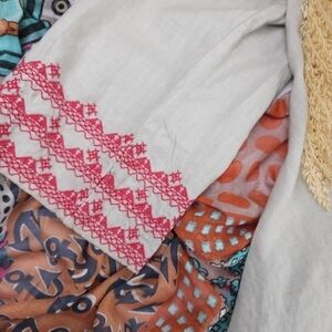Johnny Was Camille Draped Embroidered Grey Red Cardigan Sz L