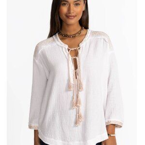 New Johnny Was Ghenar Gauze Top, Bright White, Size XXL