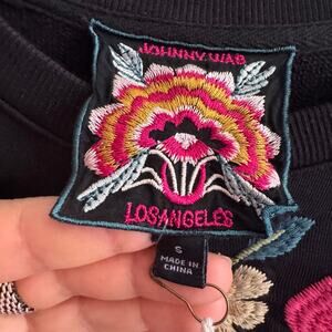New Johnny Was Hi-Lo Pullover Black Floral Embroidered Slit Long Sleeve Sz S
