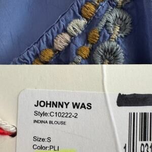 New Johnny Was Indina Blouse Blue Floral Embroidery Lace Long Sleeve Sz S