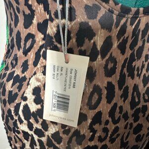New with tags unused condition, size XL, fully lined, brown cheetah print with embroidery on body, sewn in bra lining, neck tie