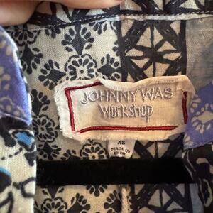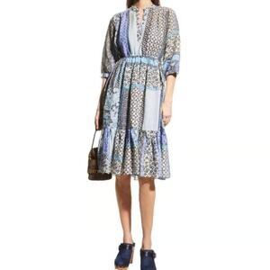 New Johnny Was Marrakesh Patchwork Drawstring Dress Blue V-Neck Sz XS