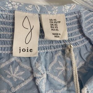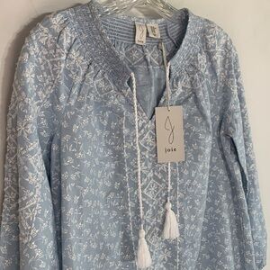 New Joie Embroidered Bohemian V neck tassel top sky blue xs nwt