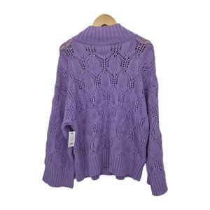 New Joie Imaan 100% Wool Open Knit Sweater Deep Lavender Chunky Knit Large