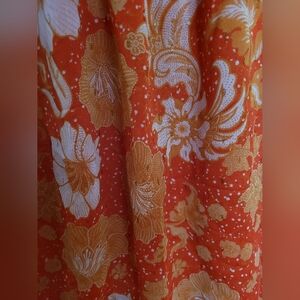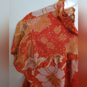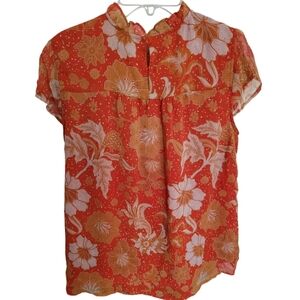 New Joie Orange Gold Floral Flutter Sleeveless Keyhole Blouse Size Medium