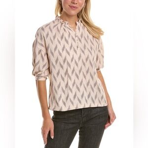 New! Joie Salia B Printed Elbow Sleeve Top in Tapioca Castlerock - 100% Cotton