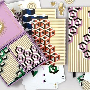The Jonathan Adler Versailles Boxed Die-cut Notecard Set features Adler’s signature pattern dynamically deconstructed for a 21st-century twist, classic-meets-cutting edge, treating graphic greatness to gobs of gold.