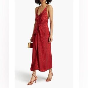 New! Jonathan Simkhai Giana Ruffled Satin-jacquard Gown Red nwot 33991