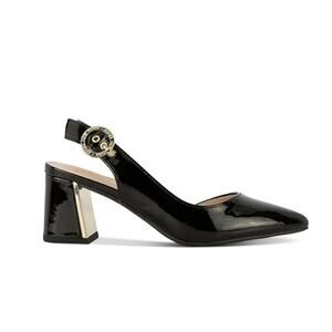 Step out in style with these chic Jones New York Candree slingback pumps! These dress pumps feature a sleek black patent finish and a comfortable block heel, making them perfect for all-day wear.